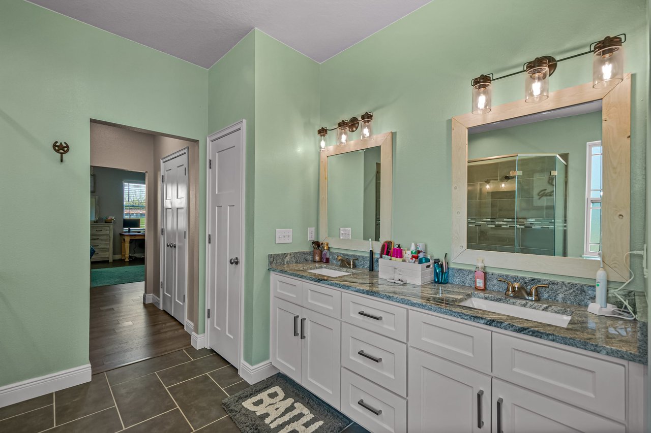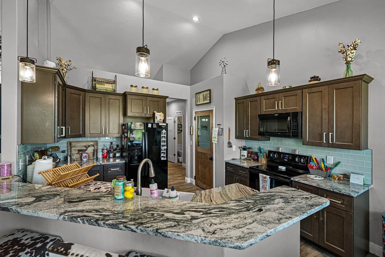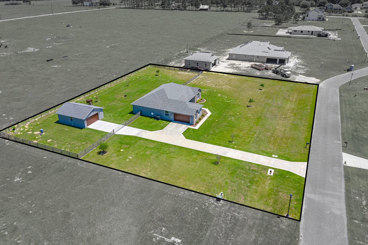 Gorgeous 3 bedroom, 2.5 bath, 4 car garage home situated on just over an acre in the low HOA community of Drake Estates. Built in 2019, with a newer two car detached garage/workshop, this home is ready for its second owners. Walk through the covered front porch into the warm, neutrally toned open living space with plank tile flooring throughout. The 16x24 living room features high vaulted ceilings, French doors to the screened porch and open sight lines to the dining room and kitchen. Offering granite countertops, soft close wood cabinetry, a breakfast bar and an eat-in dinette, the 12x12 kitchen is perfect for any home cook. On the west side of the home, the spacious master suite is complete with easy to maintain laminate flooring, large walk-in closet and a luxurious ensuite bathroom with a glass enclosed walk-in shower, soaking tub and his and hers sinks. On the opposite side of the home, providing plenty of privacy, there are two more generously sized guest bedrooms with a full, jack and Jill bathroom between. Outside, you can relax under the screened porch, enjoy the sprawling, fully fenced backyard, or work on projects within the two, 2 car garages. The location is ideal, just a short drive to down town Dade City, major highways, restaurants, medical facilities, entertainment and more. Call today for your private showing of this beautiful home.